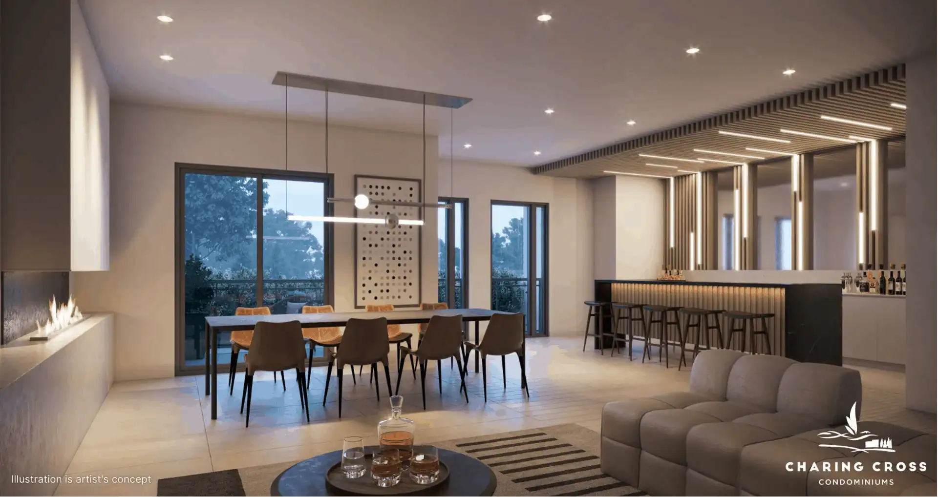 Building Amenities: Lobby with Waiting Area and Concierge, Pet Wash, Fitness Centre, Common Dining Room with Bar, and Outdoor BBQ with Seating Area
