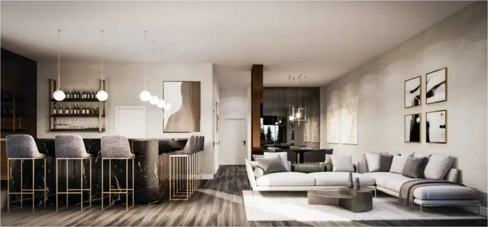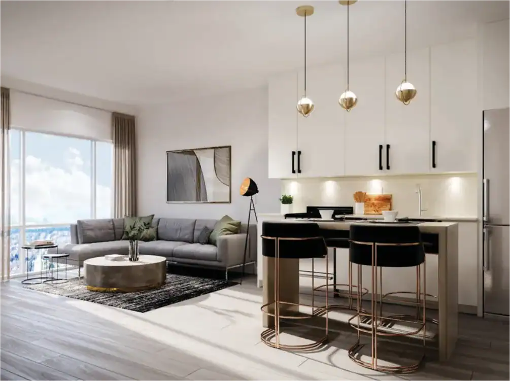 Suite Finishes: 9ft Ceilings, Wide Plank Laminate Flooring, Quartz Kitchen Countertops, Stainless Steel Kitchen Appliances, Stacked Washer & Dryer and more