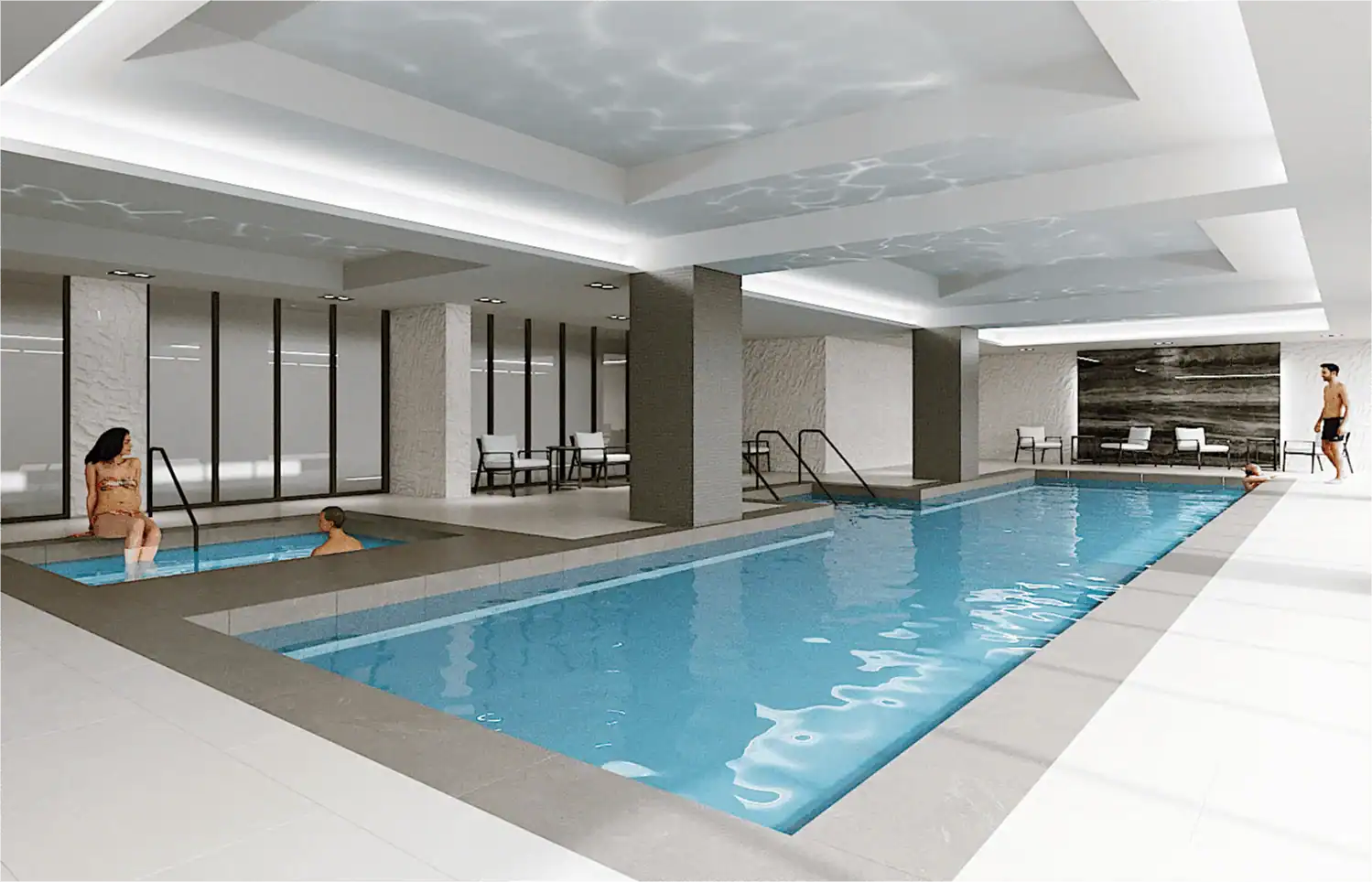 Building Amenities: 24Hr Concierge, Fitness Facilities Include Indoor Swimming Pool, Whirlpool, Yoga Area, Weight Room and Walk Out to Landscaped Terrace Areas, Two Furnished Guest Suites, Secure Bicycle Storage Areas, Pet Spa for Grooming, Multipurpose Room, Billiard Room and Meeting Areas, Roof Top Sky Lounge with Bar, Caterers Kitchen, BBQ Areas and Dining Area with Wrap Around Terraces with Seated Conversation Areas and Fireplace Feature, Outdoor Sports Court and Children’s Play Areas