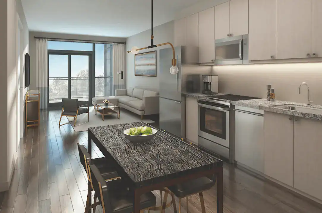 Suite Finishes: Wide Plank Laminate Flooring, Stone Kitchen Countertops, Stainless Steel Kitchen Appliances, Stacked Washer and Dryer & More
