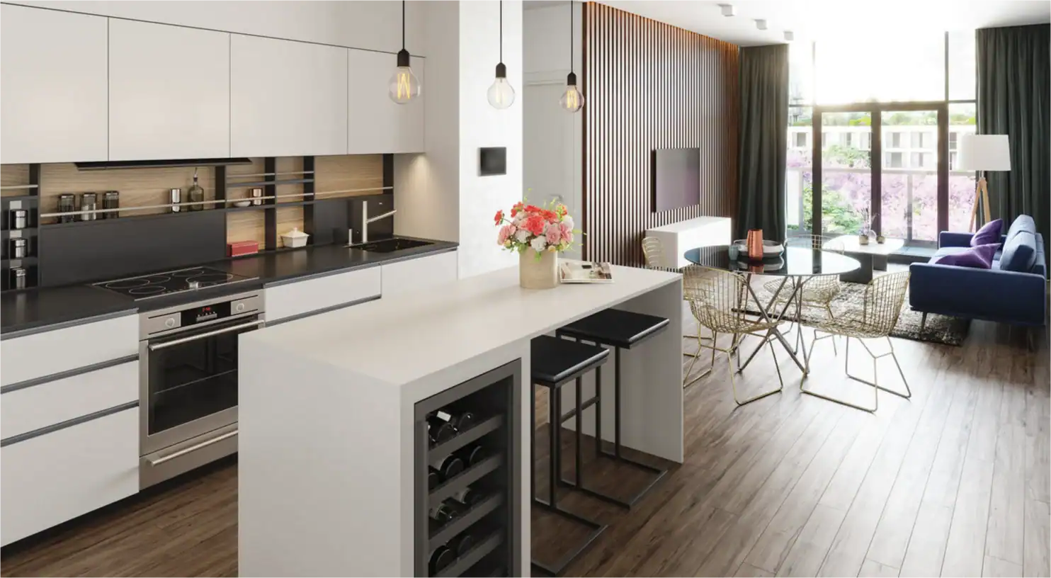 Suite Features: 9′ or 10′ Ceilings, Wide Plank Engineered Water Resistant Flooring, Quartz Kitchen Countertop, Roller Shades included in all Suites, High Speed Unlimited Wi-Fi Service, Stainless Steel Kitchen Appliances, Stacked Washer & Dryer and more